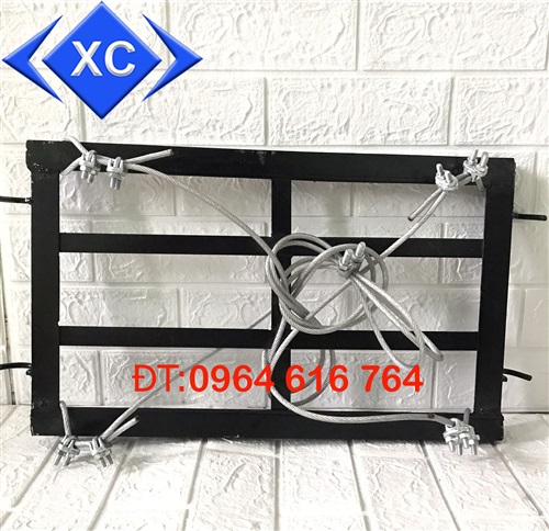- Mỗi đầu dây cáp được bắt 2 con khóa cáp 6. Có 4 đầu dây, mỗi đầu được bắt 2 khóa cáp 6, trên đỉnh 4 đầu dây treo được bắt 1 khóa cáp 12.